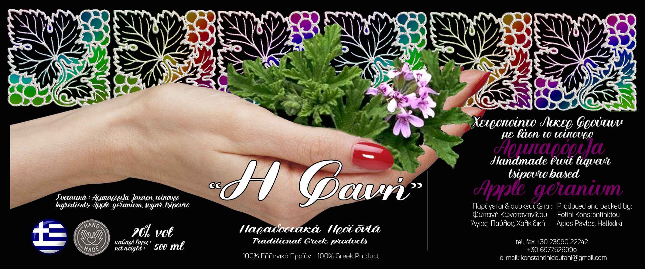 Κάθε φιάλη παράγεται με προσοχή και αγάπη, σεβόμενοι την παράδοση. Όλα τα συστατικά προέρχονται από την Ελλάδα, υποστηρίζοντας την ελληνική γαστρονομία.