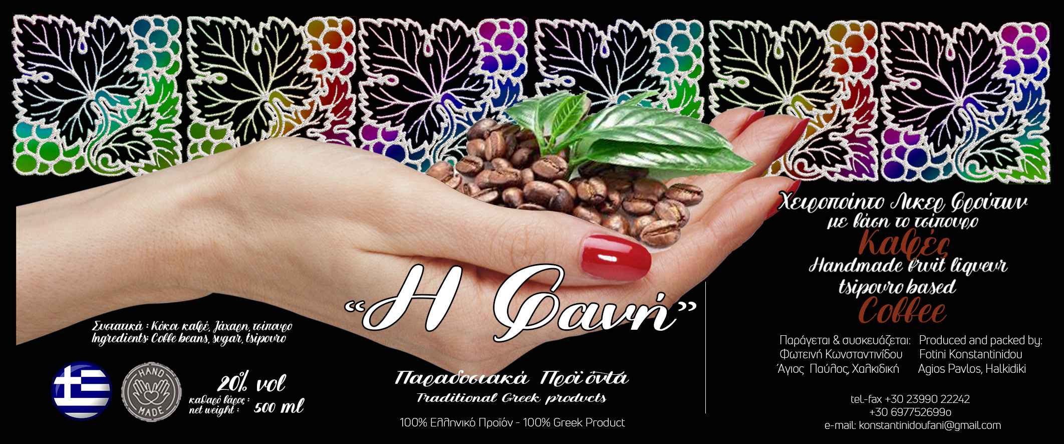 Το Λικέρ καφέ είναι ένα κλασικό ιταλικό λικέρ, παγκοσμίως γνωστό για την πλούσια, γλυκιά γεύση του που θυμίζει πικραμύγδαλο ή κουκούτσι βερίκοκου. Στην "Η Φανή" υιοθετούμε αυτήν την κομψή συνταγή και την εκτελούμε με την ποιότητα και την αγνότητα των δικών μας, χειροποίητων προϊόντων.