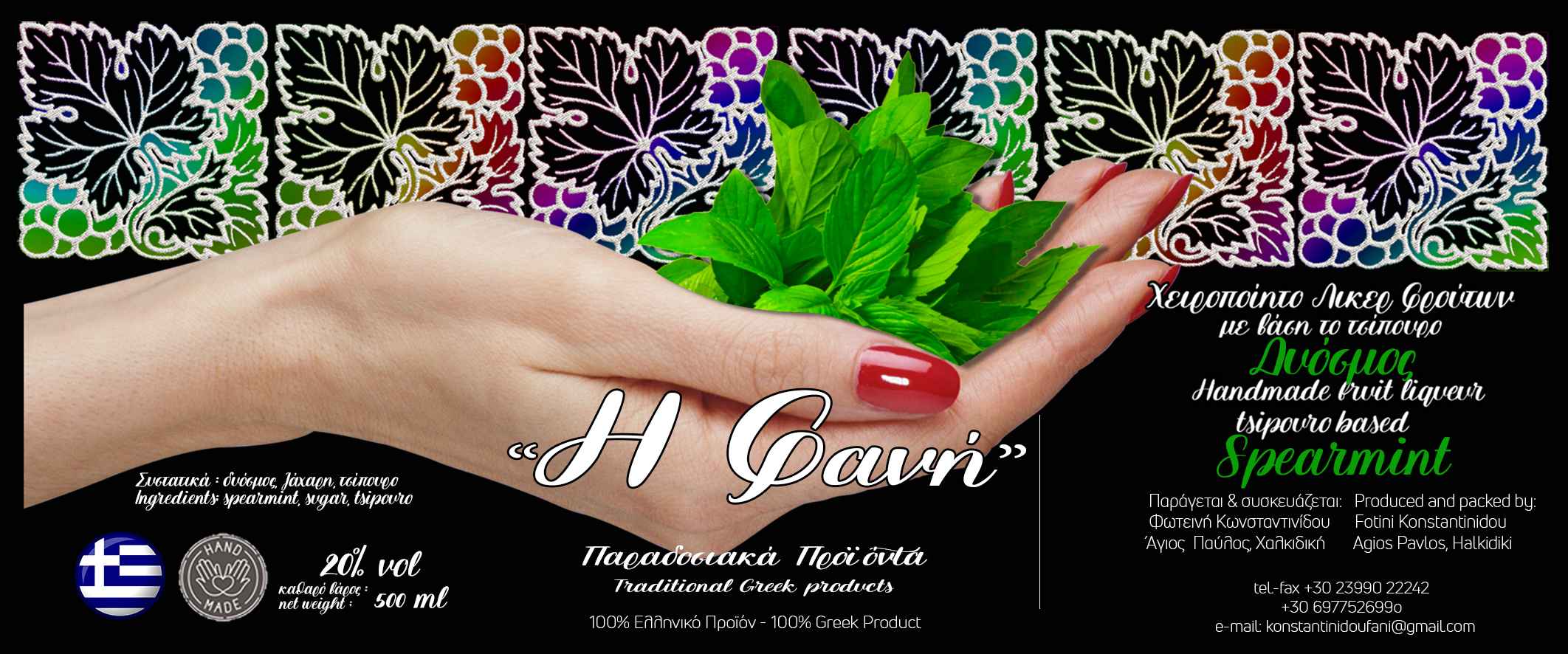 Κάθε φιάλη παράγεται με προσοχή και αγάπη, σεβόμενοι την παράδοση. Όλα τα συστατικά προέρχονται από την Ελλάδα, υποστηρίζοντας την ελληνική γαστρονομία.
